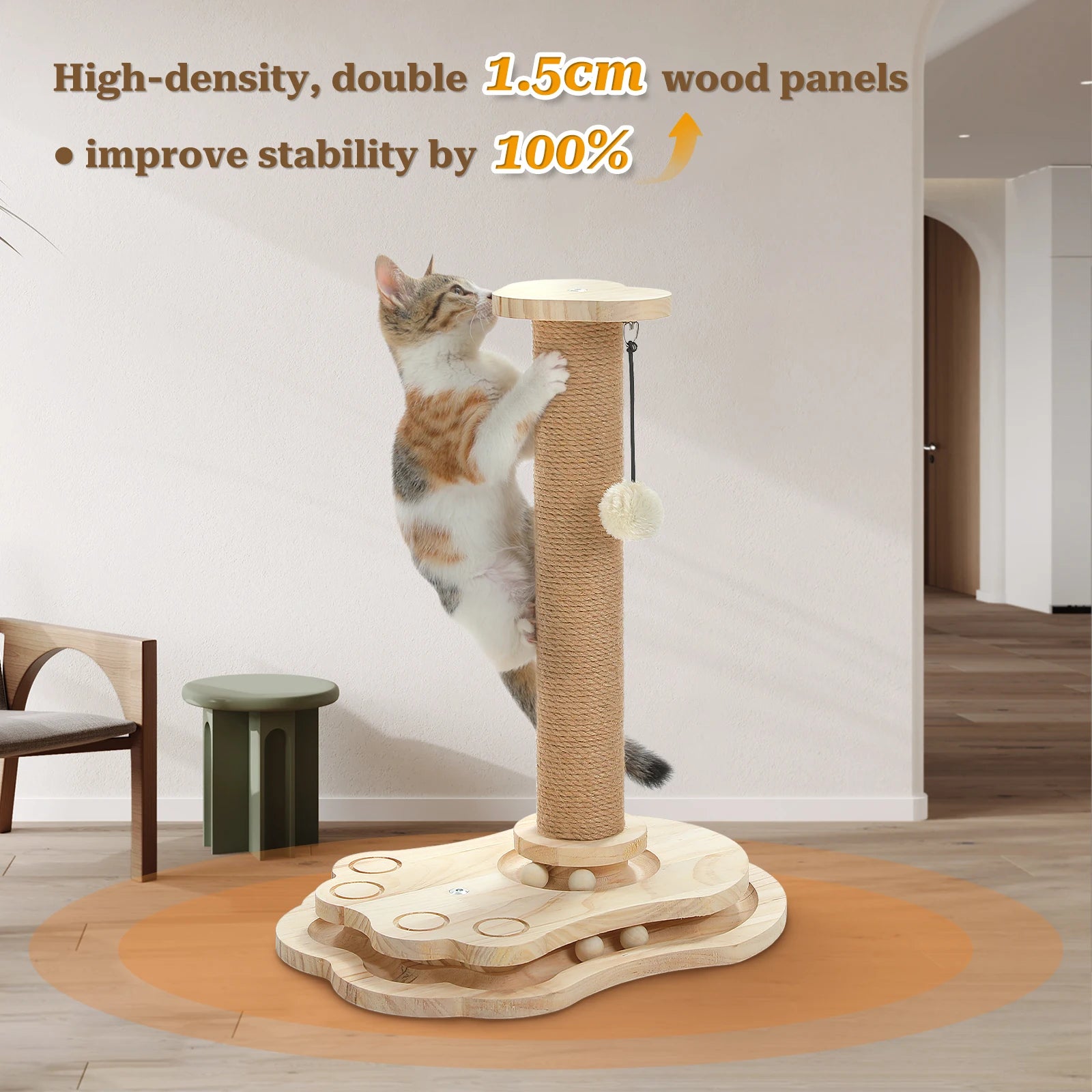 Wooden Cat Scratching Post with Rolling Ball Track Hanging Ball Small Cat Furniture with Natural Sisal Rope Interactive Cat Toy
